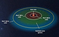 планетами вращается вокруг звезды красный карлик Wolf 1061.